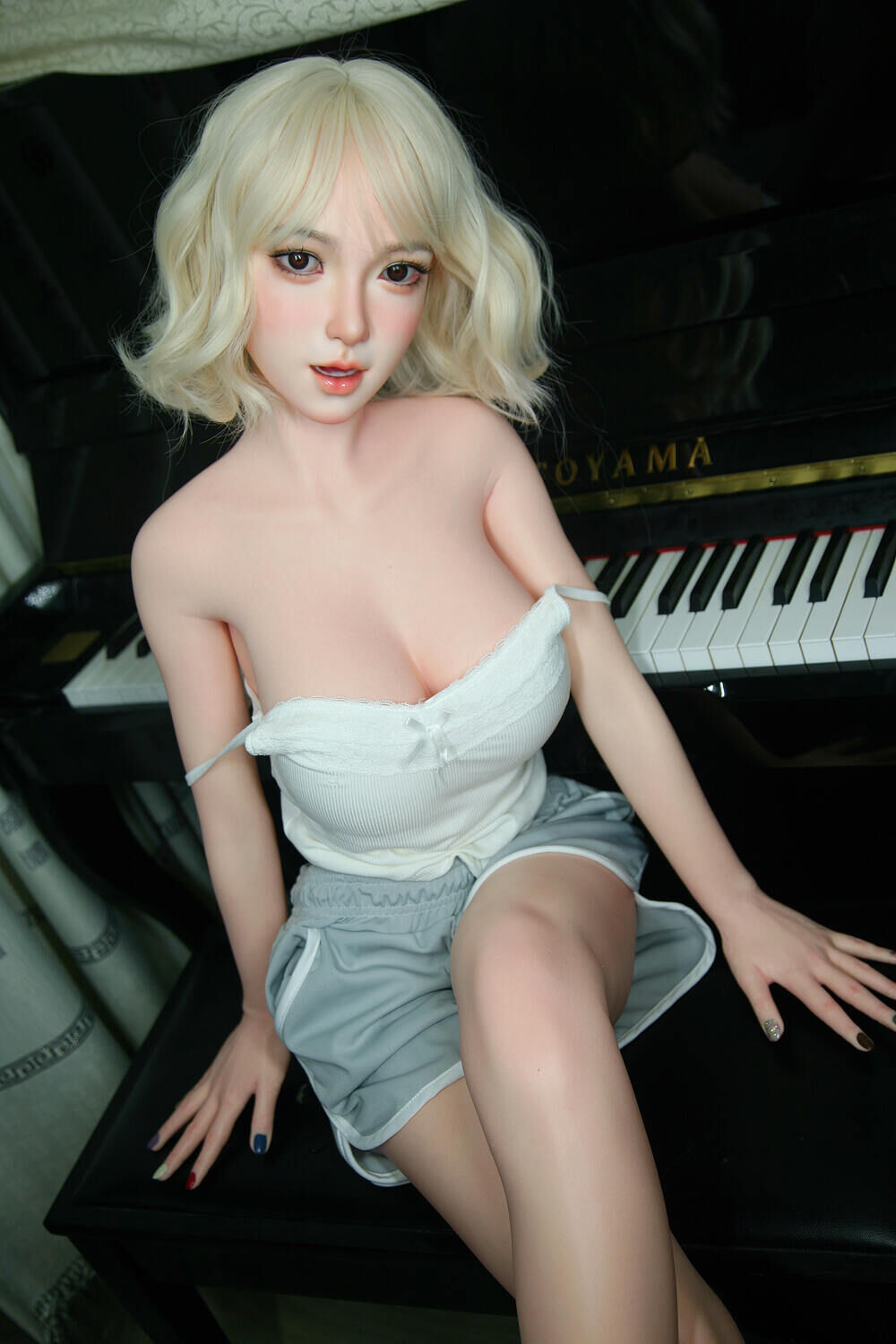 Asian Sex Doll Curvy Medium Breast MILF Skinny Blonde Hair Blonde 148cm/4ft10 D-cup Silicone Sex Doll – Nancy