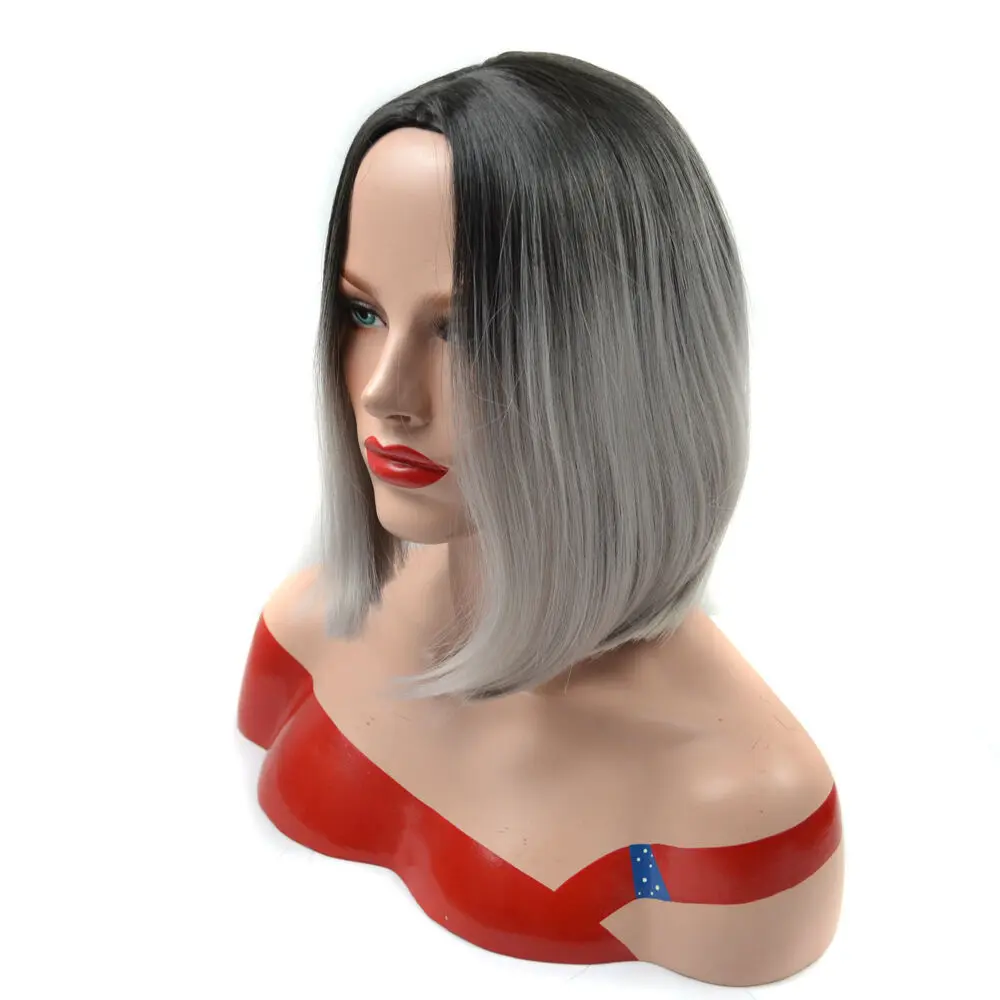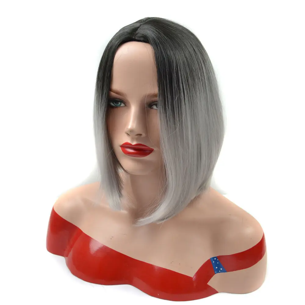 Black Grey Gradient Wig Straight